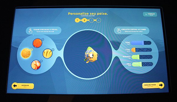 The virtual aquarium, is composed of many interactive panels and visitors can discover important information about certain species. This activity was created because there are some species of animals that cannot have contact with the public to avoid animal stress and safety issues.